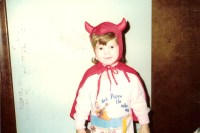 “Yeah, I was Rainbow Brite for Halloween one year but this picture isn’t from Halloween. It was a Girl Scout function. We were walking across the balance beam. We were supposed to wear leotards. I wore my Rainbow Brite dress and carried Twink across the balance beam with me. I did all kinds of tricks and twirls. I think it took me about 5 minutes to get across the beam.”